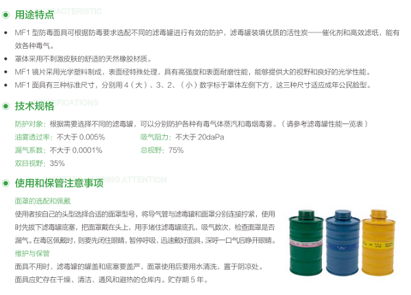 雙球MF1-3#&4#自吸過濾式防毒面具面罩